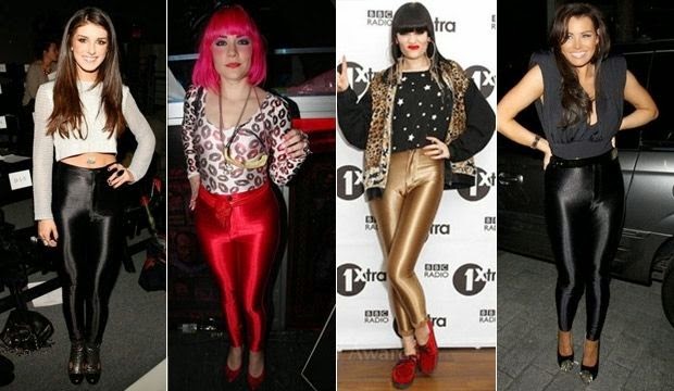 celebridades. As calças de cintura alta metalizadas que foram sucesso na era do